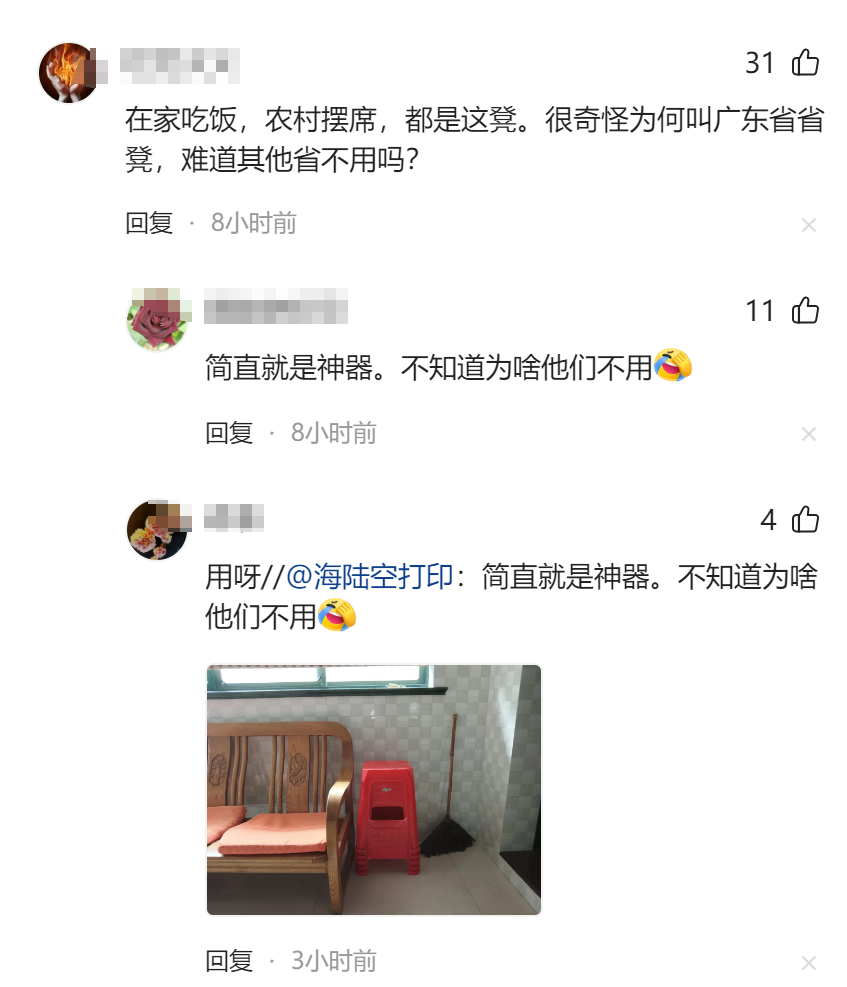 而网友们也乐坏了,有广东的网友直接评论:“啥叫吸取别的学校教训啊,我们广东一直用的就是这种省凳,在家吃饭都坐这个!”
