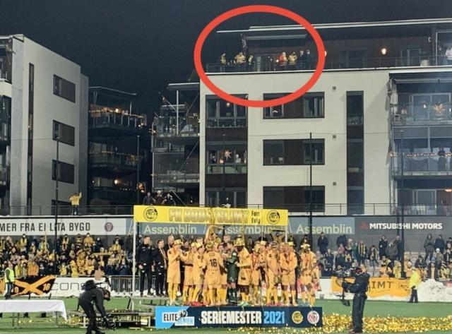 比较有意思的是,当地球迷和直播比赛的挪威电视台发现,座落在球场边最佳观景位置的楼盘顶层,一群博德闪耀球迷正在庆祝胜利,这个公寓的主人不是别人,正是主队姆延达伦的主教练韦加·汉森!